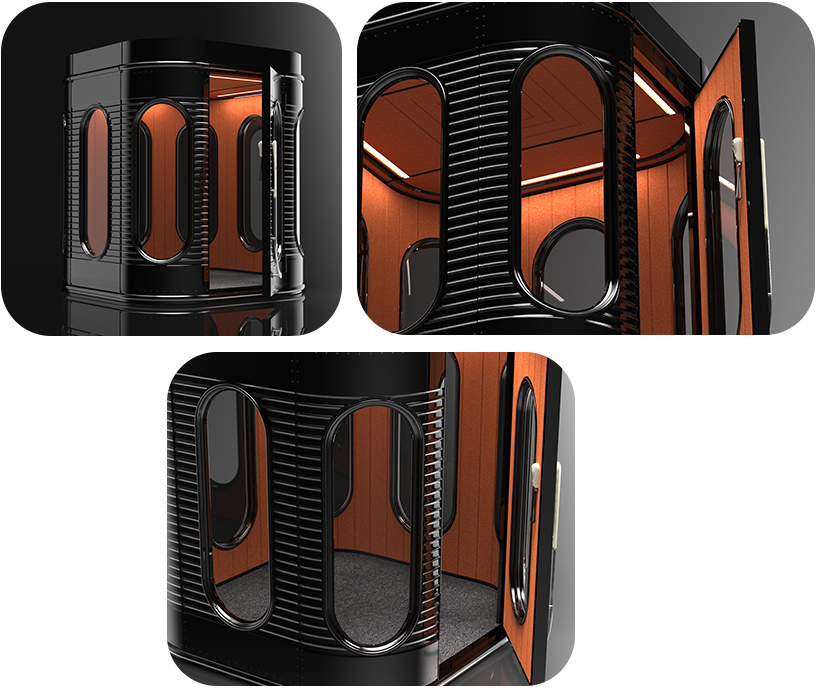 A multi-person cabin, certified to provide the greatest degree of soundproofing and noise absorption.