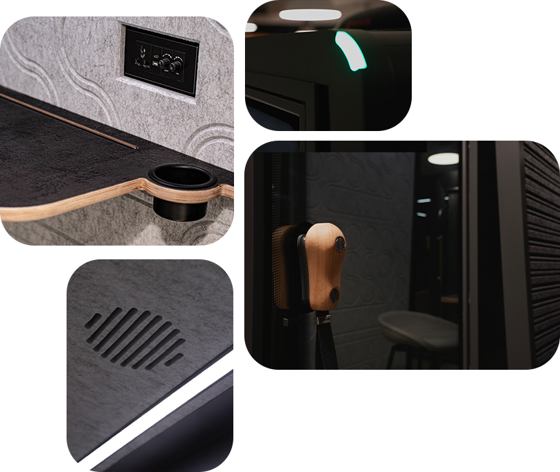 Tam.Uno is a single-person acoustic pod defined by its distinctive trapezium geometry. Its dual-orientation design reimagines how spatial form influences posture, mindset, and activity, supporting a range of working modes from focused concentration to creative exploration.